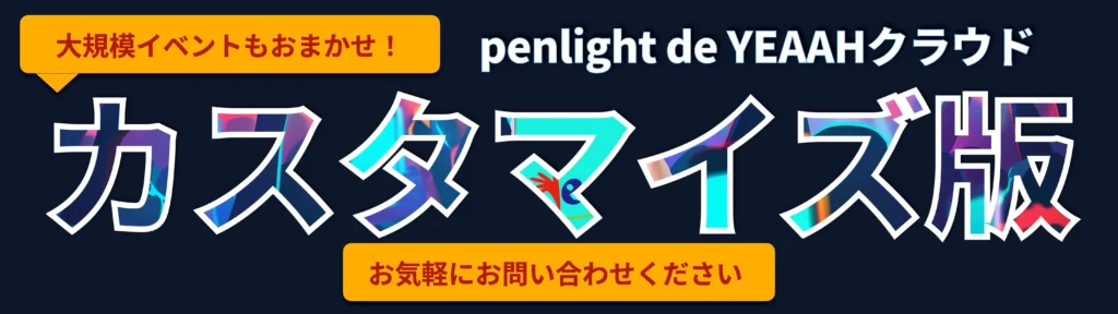 ペンライト de YEAAH クラウド(標準版)を、1日(1イベント = 1回)あたり約1500人規模まで利用できるチケット(3チケット分)です。